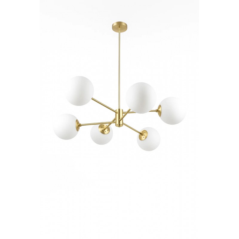 Αναδείξτε τον χώρο σας με αυτό το μοντέρνας αισθητικής φωτιστικό της εταιρείας BronzeDesign, που συνδυάζει τον εκλεπτυσμένο σχεδιασμό με τη διαχρονική κομψότητα. Το σώμα του φωτιστικού, σε χρυσό ματ φινίρισμα, υποστηρίζει έξι οπαλίνες διαμέτρου 15cm, δημιουργώντας ένα αρμονικό παιχνίδι συμμετρίας και φωτεινότητας.