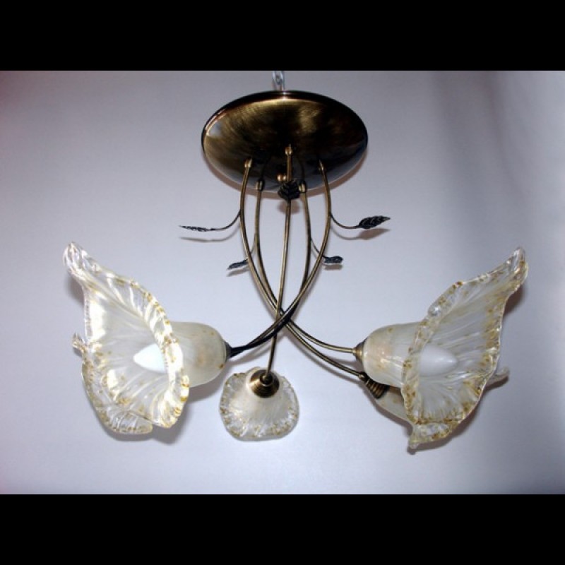 Φωτιστικό οροφής  κλασικής  γραμμής σε οξυντέ  με χειροποίητο γυαλί.