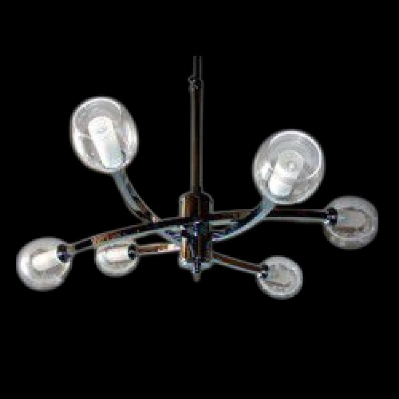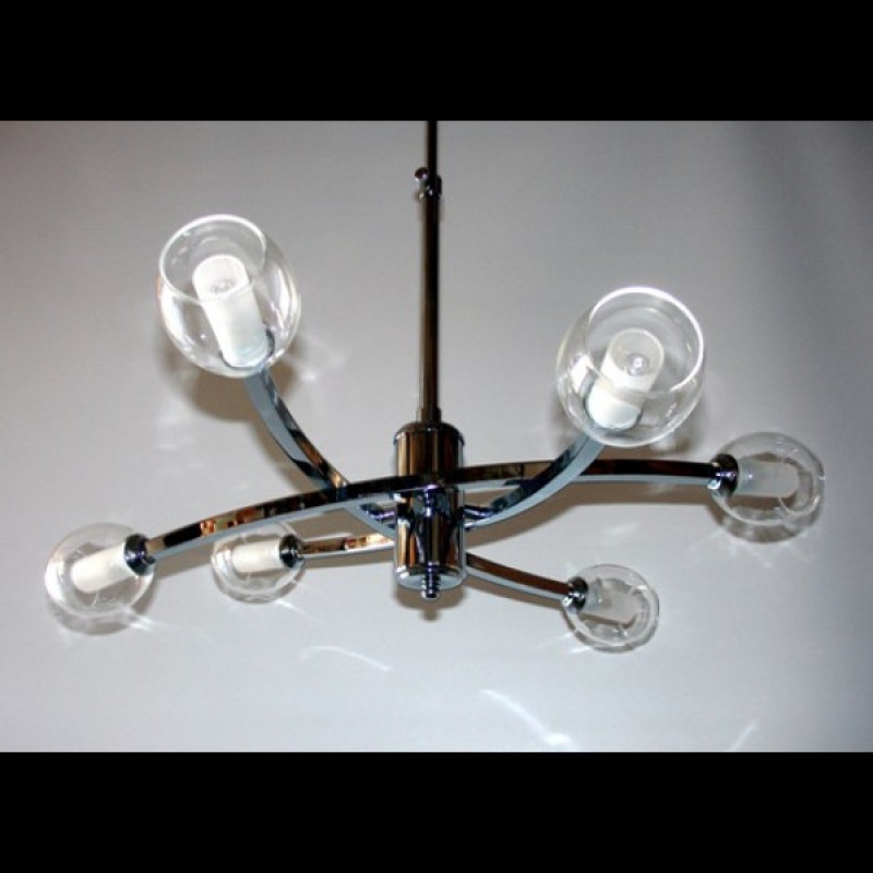 Κρεμαστό φωτιστικό μοντέρνας γραμμής σε χρώμιο με γυαλί και κρύσταλλα.