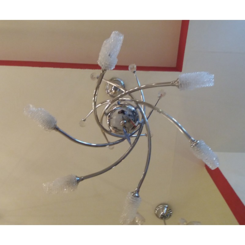 Κρεμαστό φωτιστικό μοντέρνας γραμμής σε χρώμιο με γυαλί και κρύσταλλα.