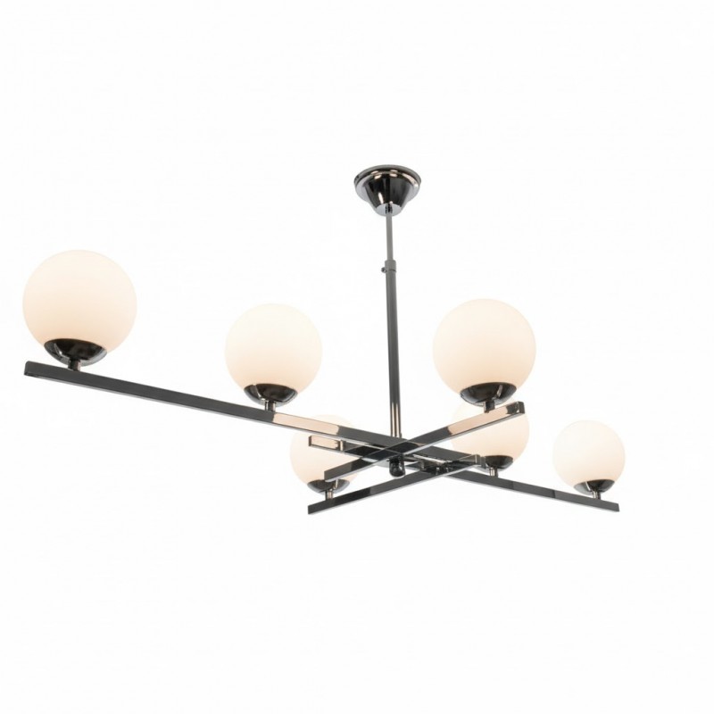 Κρεμαστό φωτιστικό μοντέρνας  γραμμής σε χρώμιο με οπαλίνα.