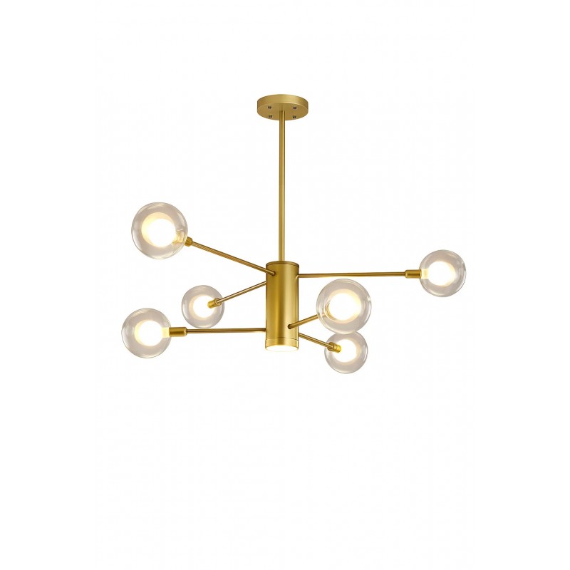 Κρεμαστό φωτιστικό μοντέρνας γραμμής σε χρυσό ματ με μπάλα διάφανη 12cm.
