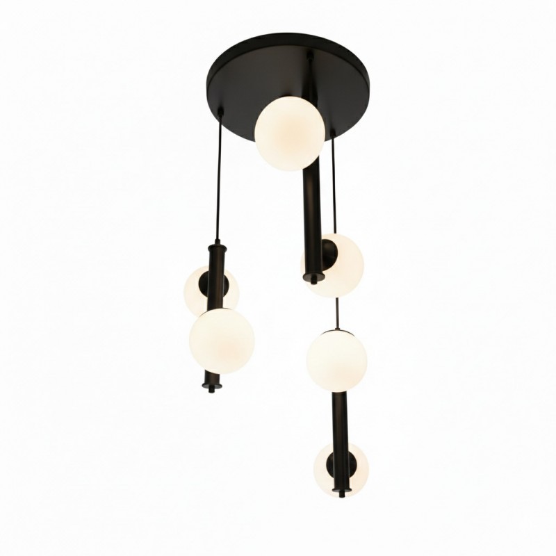 Φωτιστικό οροφής μοντέρνας γραμμής σε μαύρο ματ χρώμα με έξι οπαλίνες 12cm.
