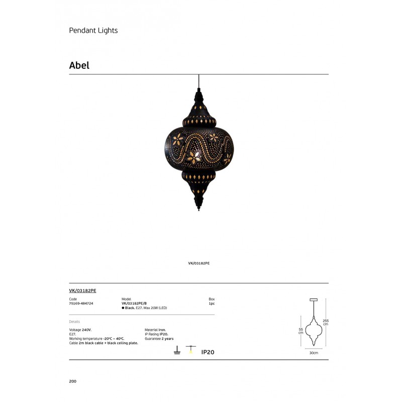 Φωτιστικό Μονόφωτο VK03182 μεταλλικό, 240V, Ε27 Μαύρο